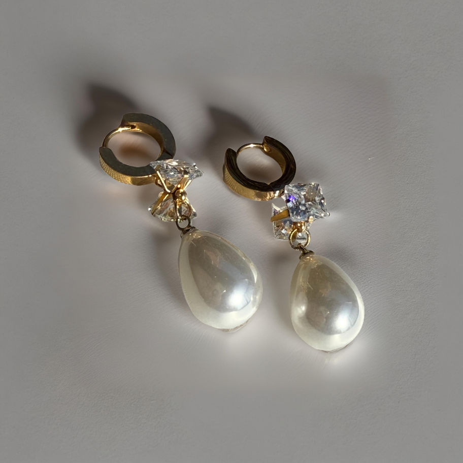 Refined and romantic, Coraline features a delicate teardrop design suspended from a warm gold-tone base. The softly lustrous drop detail evokes the elegance of classic pearls, offering timeless beauty for both modern and vintage-inspired looks.